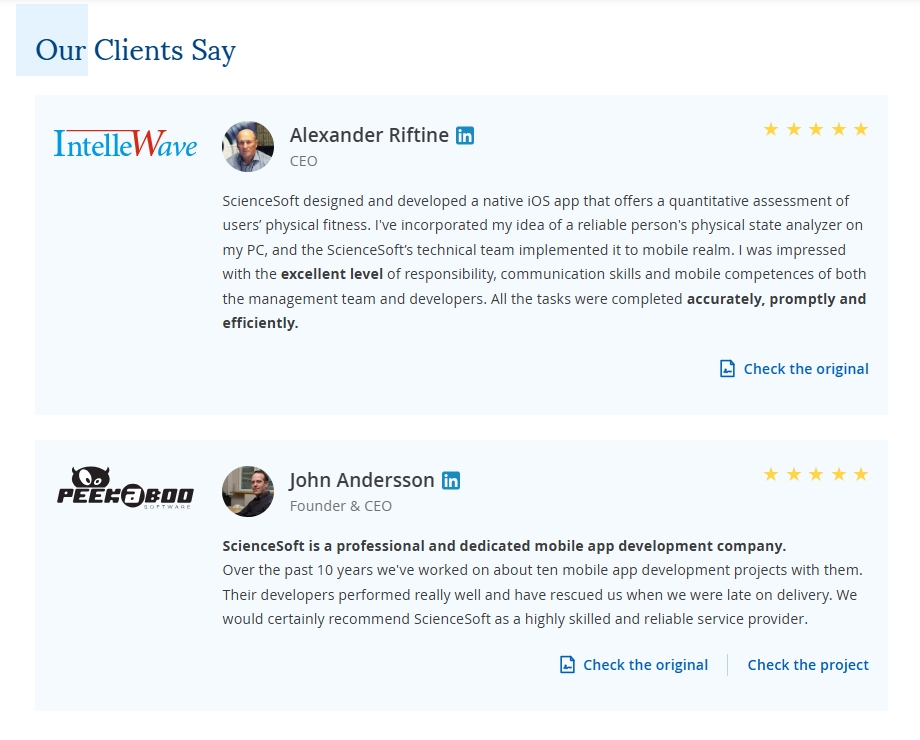 First, check their portfolio for any relevant case study. This shows that they know how to handle development challenges and complexes. Plus, they can consult you on a suitable software architecture, which is utmost important for any product development, beyond building what you ask for like a machine.
